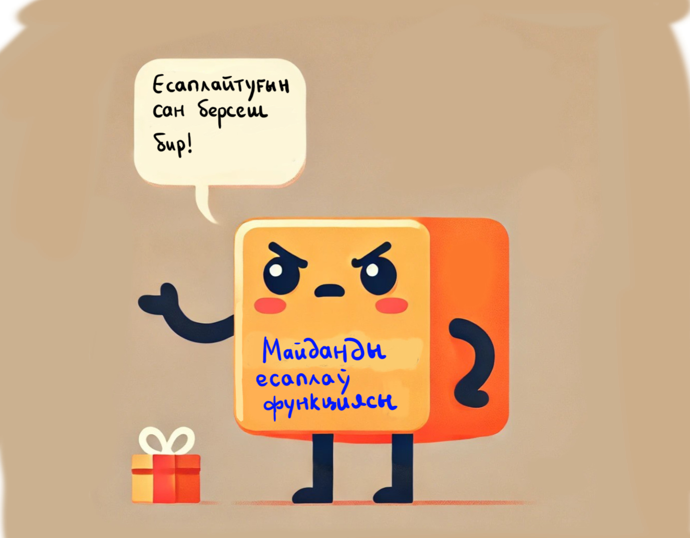 Мәселен, майданды есаплаў деген функциямыз бар. Бирақ, ол "аспаннан алып" майданды есаплап бере алмайды.